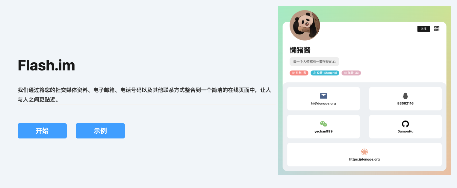 Flash.im - 高效的个人联系主页
