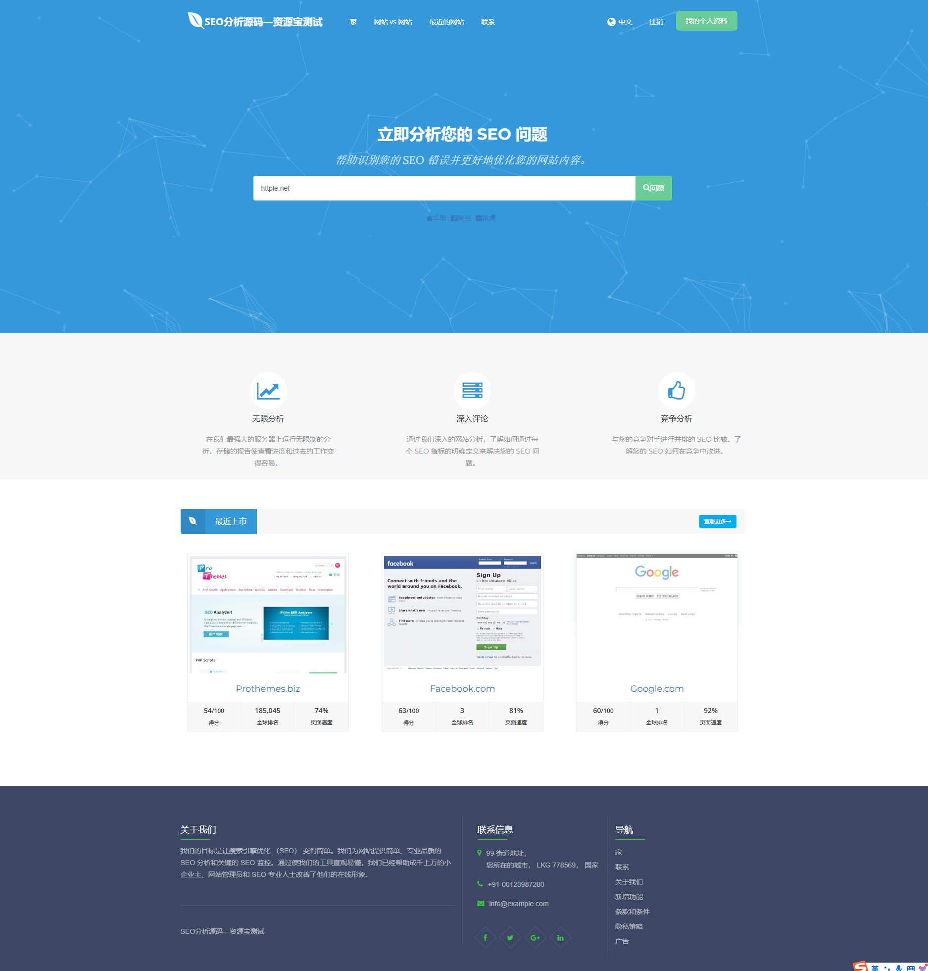 提示:分析网站需要大量服务器资源,小服务器使用估计有点卡,语言是英文
